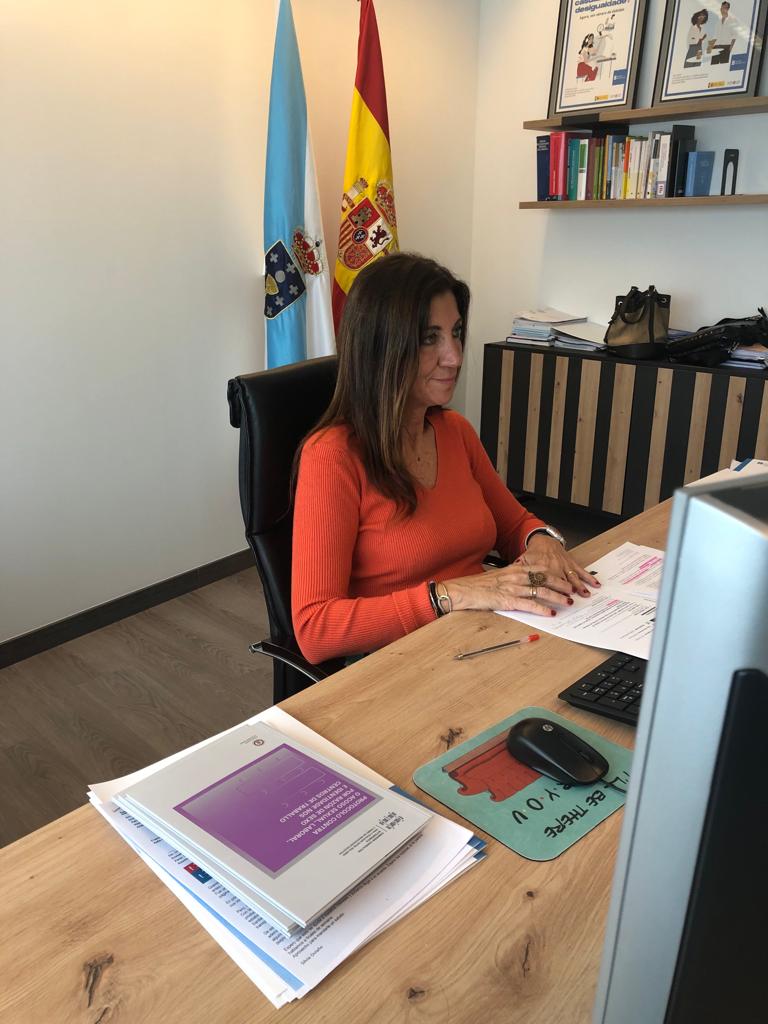 Santiago de Compostela, 10 de noviembre de 2022. La directora general de Relaciones Laborales, Elena Mancha, participó hoy en la apertura del webinario Gestión del estrés que impartió hoy el Instituto de Seguridad y Salud Laboral de Galicia (Issga) para 300 personas inscritas.