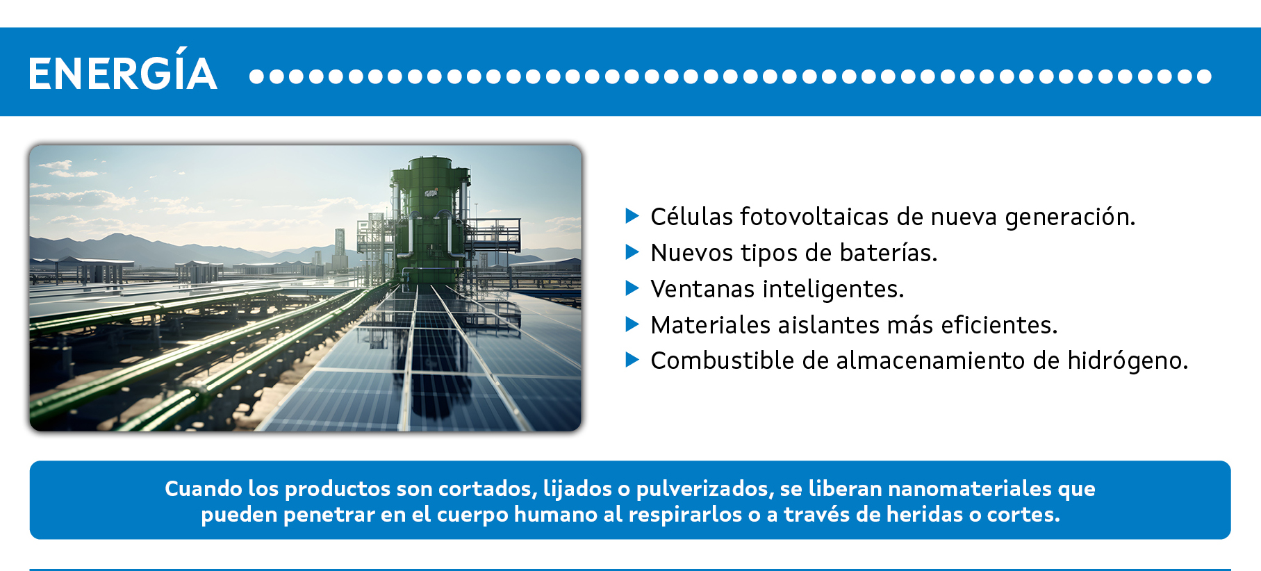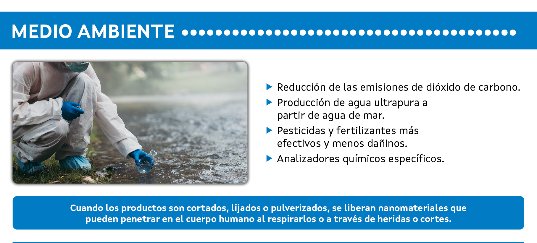 | Nanomaterial | Ejemplos de aplicaciones en distintos sectores |