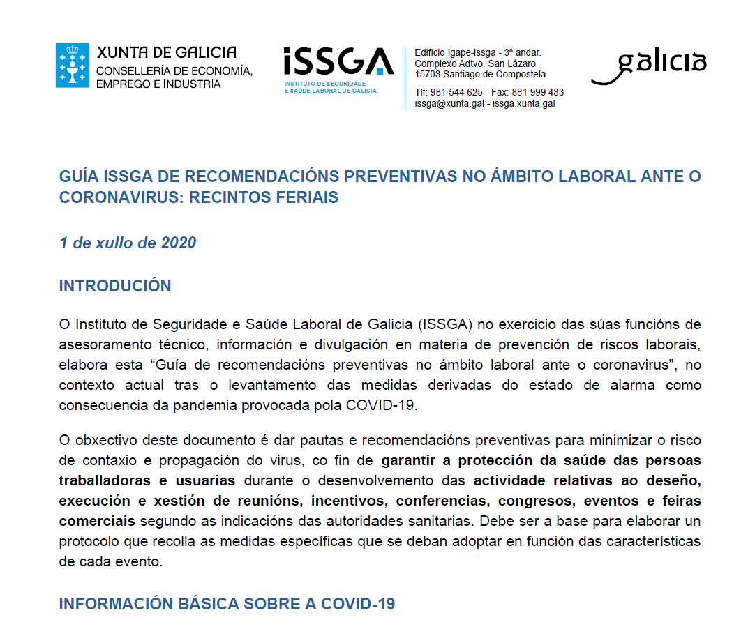 Guía ISSGA de recomendacións preventivas no ámbito laboral ante o coronavirus: recintos feriais