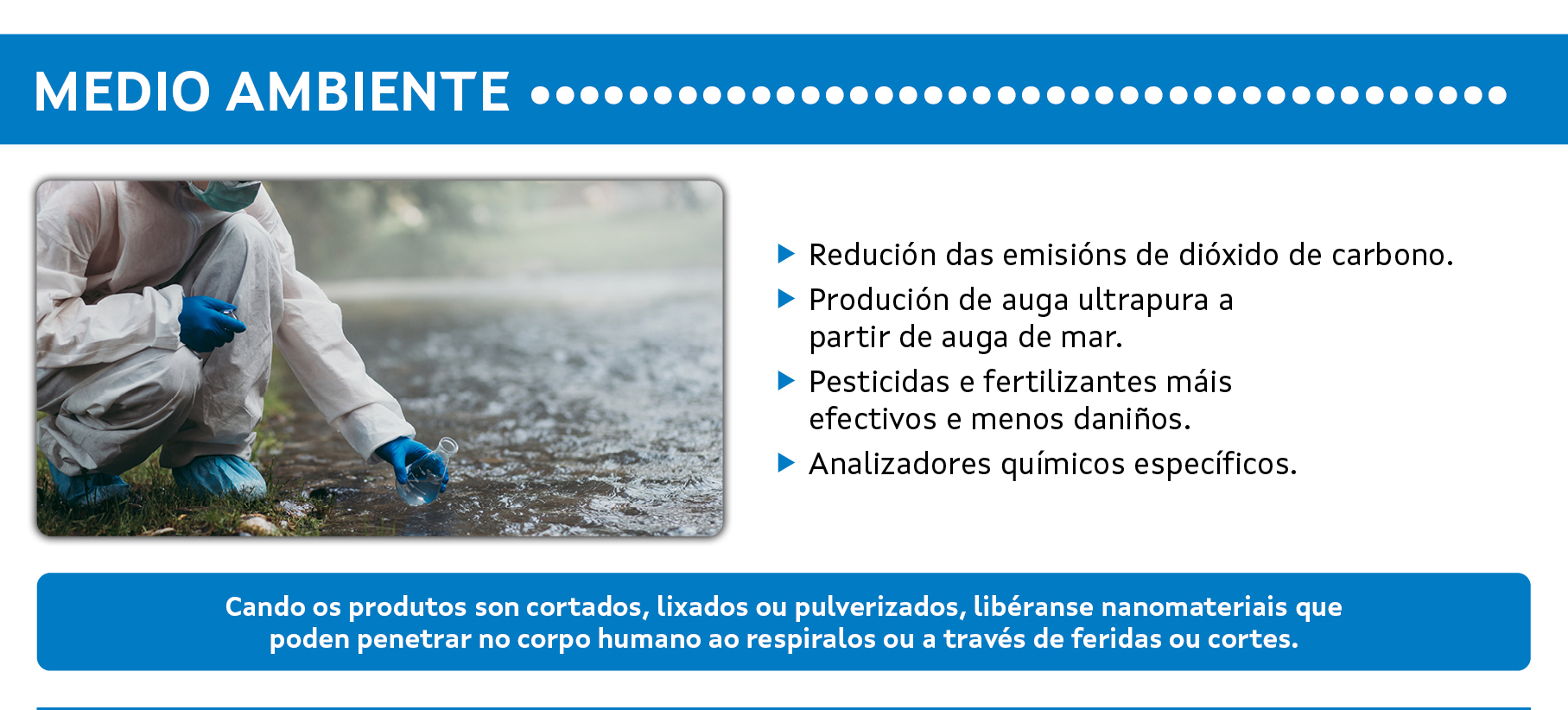 Xunto coas enormes vantaxes da aplicación da nanotecnoloxía en todos os sectores de actividade económica cohabita a incerteza sobre o risco dos nanomateriais para a saúde e seguridade das persoas e do medio ambiente.