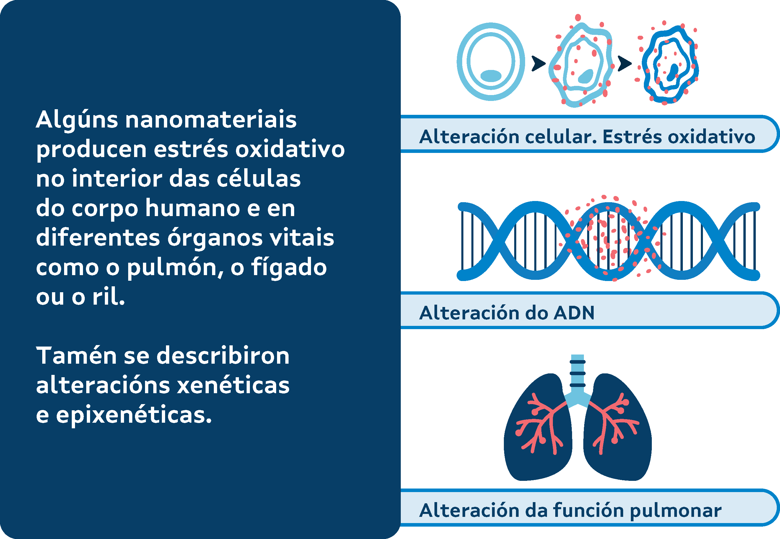 - Algúns nanomateriais producen estrés oxidativo no interior das células do corpo humano e en diferentes órganos vitais como o pulmón, o fígado ou o ril.